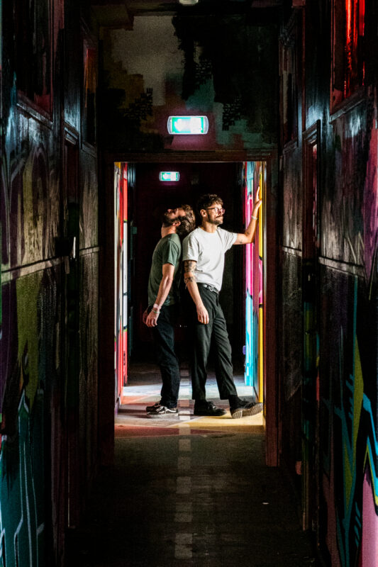 Il y a des groupes qui naissent dans la lumière. D’autres dans l’urgence. vonsharon appartient clairement à la seconde catégorie. Le duo breton ne cherche ni les fioritures ni les paillettes. Une batterie, une guitare, une voix (parfois deux). Rien de plus. Leur premier album, text when you get home, est sorti le 13 février 2026, veille de Saint Valentin mais ne sonne pas comme une déclaration romantique. Plutôt comme un message envoyé à 2h17 du matin, relu dix fois avant d’appuyer sur “envoyer”. Né d’une faille intime survenue lors des attentats au Bataclan, vonsharon ne transforme pas le traumatisme en posture. Il le canalise. L’énergie du disque tient de là : une tension constante proche du débordement.